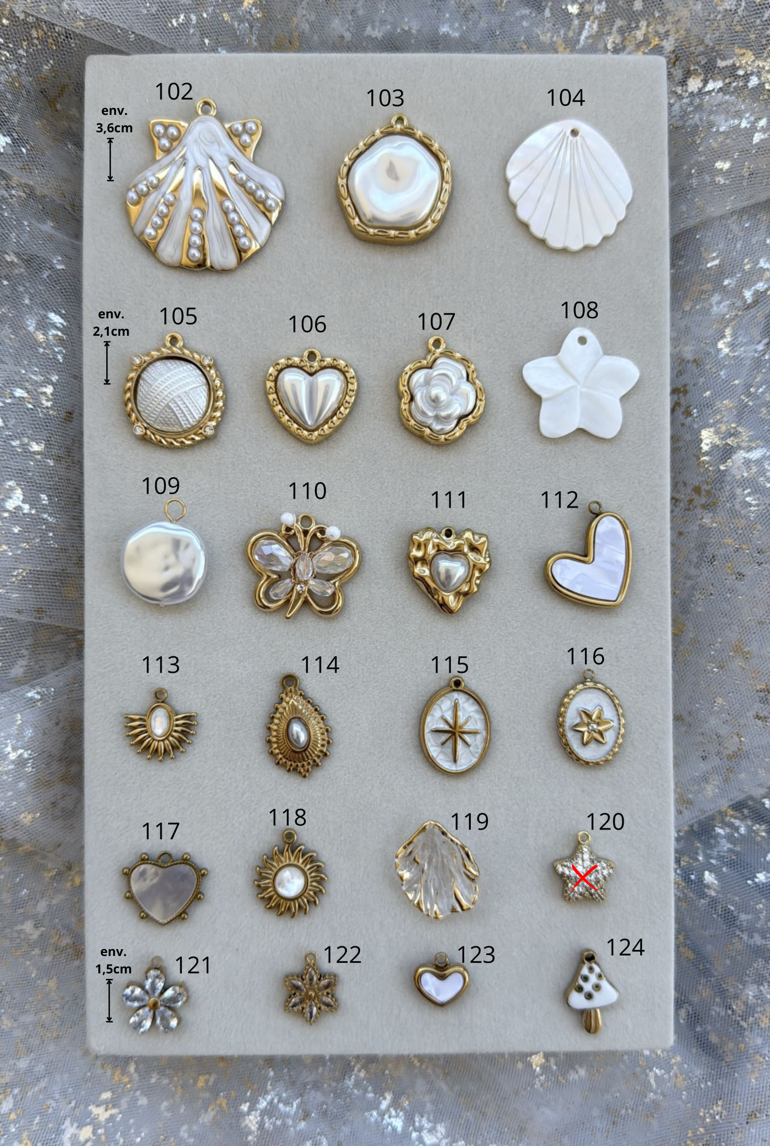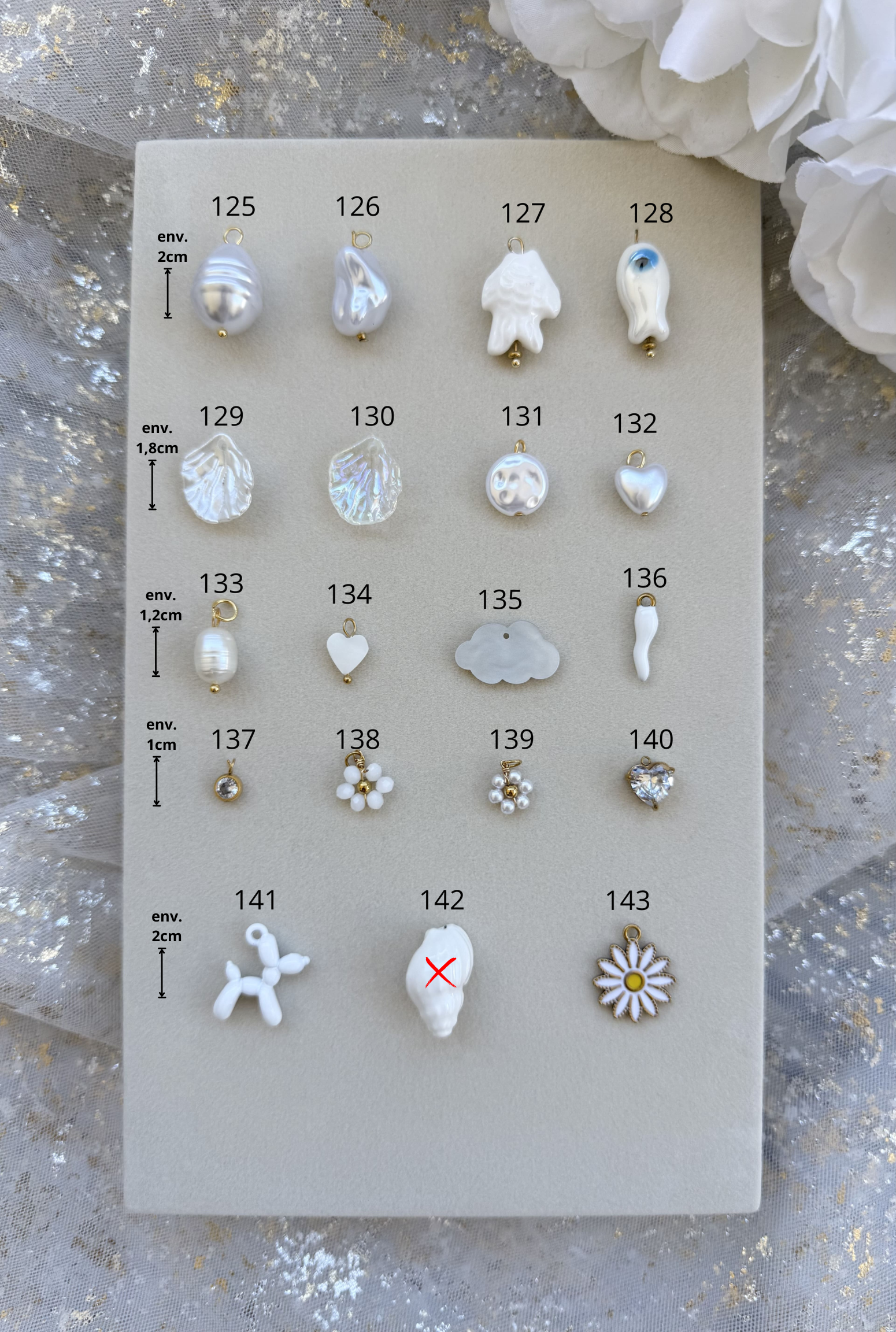 ✦ Sélectionne le nombre de charms que tu souhaites ajouter à ton collier, et inscrit les numéros correspondants dans la partie "Personnalisation"